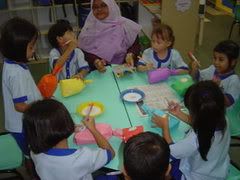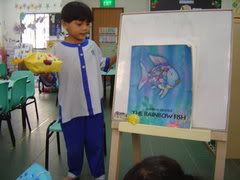 Wooohooo! I feel so fine right now! Got back from IYAD, about 4 hours ago and I am proud to say that my lesson was a success, alhamdullilah! I had 7 children for my lesson today. First, I read a story entitled 'The Rainbow Fish', than we went on making a rainbow fish of our own. I liked the reaction I see when I told the class that I am taking them for Art and Craft again. Siti went, "yeaahhh!!" and Putri was hugging me, awwwww! Children nowadays express their emotions well, way different from us back than. After the lesson, continued with routine care; helped the children with their lunch. Nadra (this curly haired, damn quiet girl) spoke to me just now, during lunch, AMAZED! I feel, after 6 sessions, the children no longer treat us as stranger but instead as one of their teacher. It does not matter that most of them still cannot remember my name, what matters most is that they acknowledge me as one of their TEACHER.